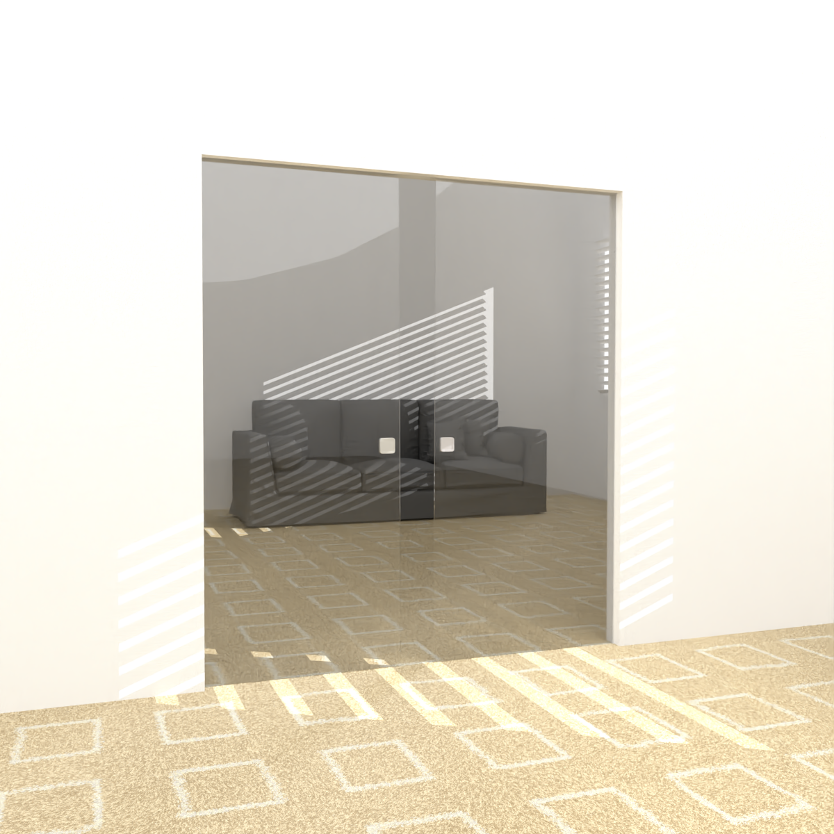 The complete set comprises two toughened safety glass doors with the design of your choice, a 4m long sliding system, two small bottom guides (one for each door), and flush/bar handles.